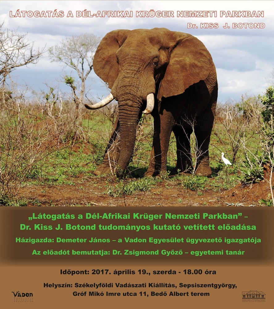 „Látogatás a Dél-Afrikai Krüger Nemzeti Parkban” – Dr. Kiss J. Botond tudományos kutató vetített előadása